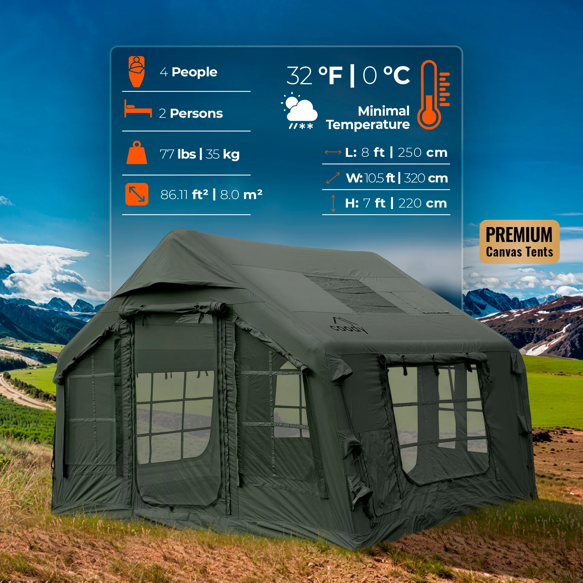 1–4 people or gear tent | Smallest Coody 8 – Compact Inflatable Tent Cabin for 4-Season Adventures