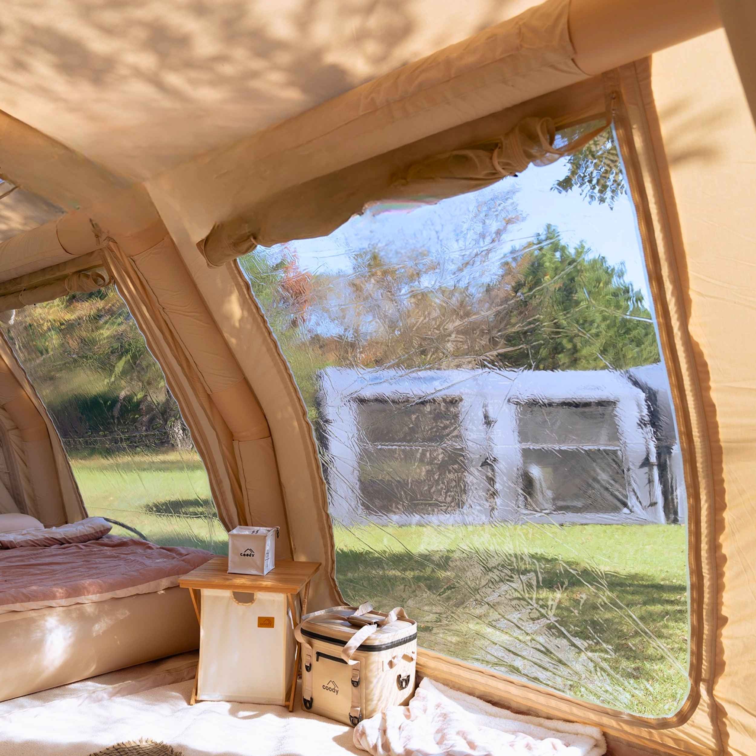 The Coody Familia Pro is a premium inflatable family tent designed as a true living space, not a temporary shelter. Its structure and proportions are engineered to maximize usable interior volume, air quality, and comfort during extended stays.